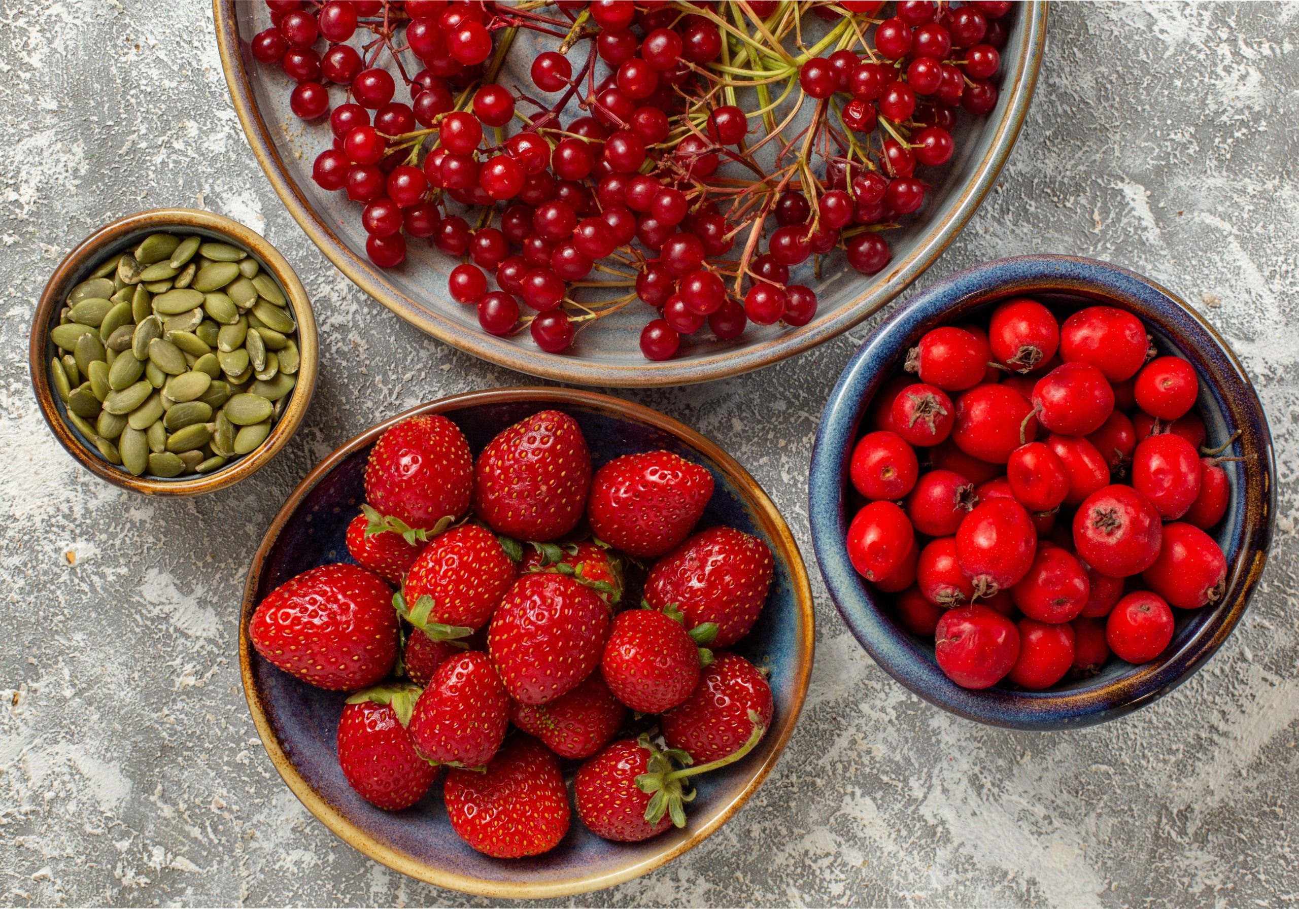 O harika görünen kırmızı meyveleri sevmeyen var mı aramızda? Meyvelerin içerdiği renklerin vücudumuza farklı farklı etkileri olduğunu biliyor muydunuz? Antioksidan açısından oldukça zengin olan ve en yoğun tüketilenler arasında; çilek, böğürtlen, yaban mersini, ahududu, vişne ,nar, frambuaz bulunur. Düşük kalori içermelerinin yanı sıra kırmızı meyveler C vitamini, K vitamini, folik asit ve lif içermesi bakımından besin değeri yüksektir. Ayrıca vücudumuzun ihtiyacı olan kolajen ve proteinler içerir. İçerdiği yüksek kolajen sayesinde cildin daha genç görünmesine de yardımcı olur. İçerisinde bulunan antosiyaninin damar sertleşmesini önlediği, kan basıncını düzenlediği, iltihaplanmaları durdurabildiği ve kanseri engellediği belirtilmektedir. Beslenme rejimleri antioksidan meyve ve sebze açısından zengin beslenen toplumlarda kalp ve damar hastalıkları ile kanserin daha az görülmesi nedeniyle kırmızı-siyah meyvelere olan ilgi artmaktadır. Amerikan Klinik Derneğinin yaptığı araştırmalara göre, kırmızı meyvelerde bulunan polifenoller, vücutta tahrip olmuş hücreleri yenileyerek Alzheimer gibi beyin ve nöron hastalıklarına karşı koruyucu etki göstermektedir.