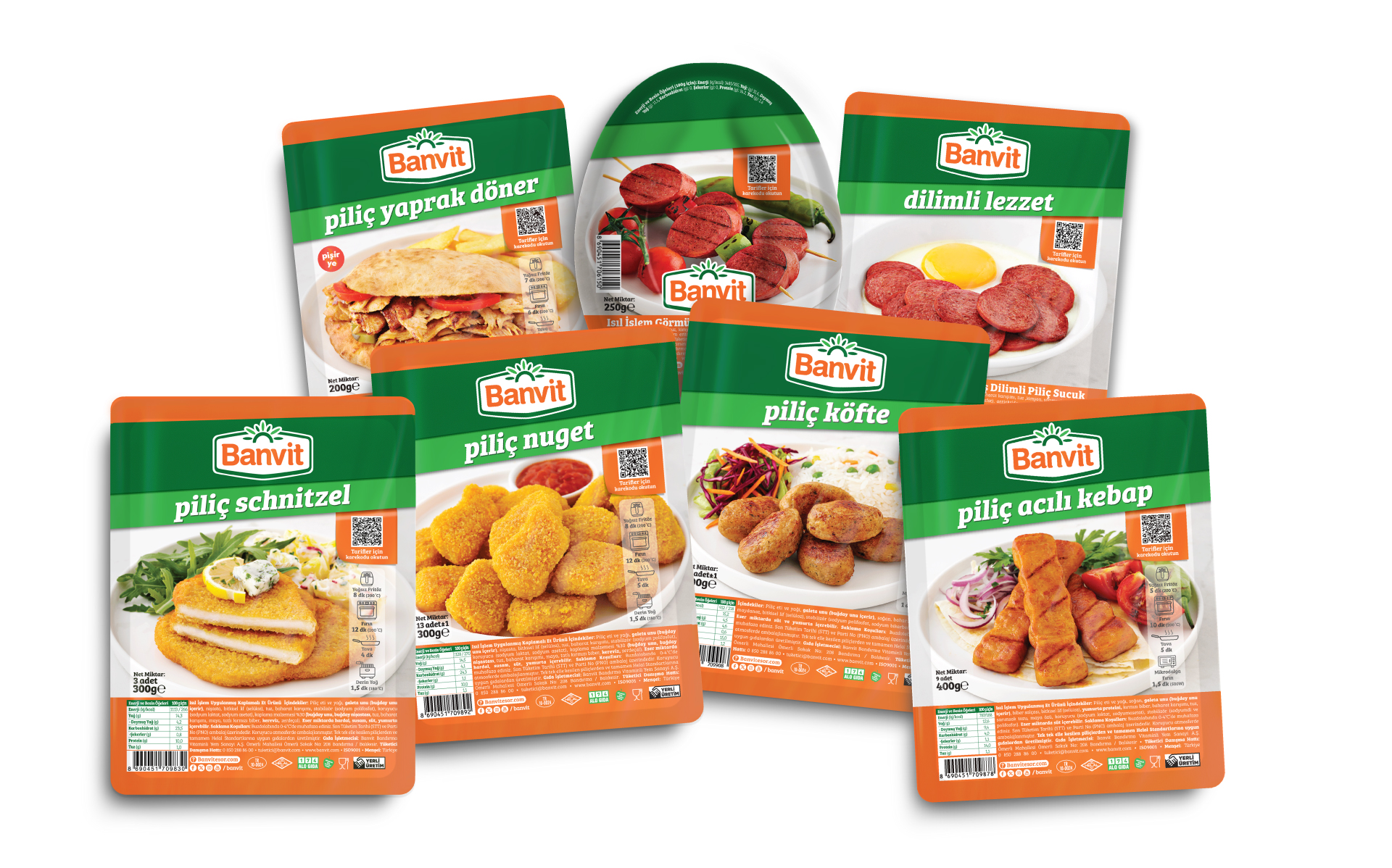 Banvit BRF, ambalaj tasarımlarında yenilemeye giderek, tüketicilerine marka kimliğinde yer alan yeşil ve turuncu ile renkli ve çekici bir dünya sunmayı hedefliyor. Ambalajlar üzerindeki QR kodlar ise tüketicilere ürünler hakkında bilgi ve tarifler sunuyor.