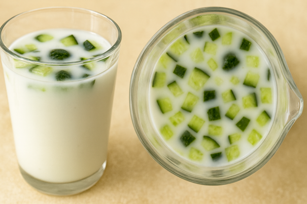 - Doğranan salatalıklar büyük bir sürahiye alınır. Üzerine soğuk su ilave edilir ve bekletilir. Bu işlem salatalığın canlılığını korur, kıtırlığını artırır, ferahlığını güçlendirir.