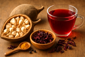 Modern Bilim: Hibiscus çayı tansiyonu düşürmede etkili (randomize kontrollü çalışmalar var). Baobab, prebiyotik lif bakımından zengin; bağırsak mikrobiyotasını olumlu etkiliyor.
