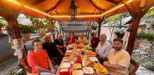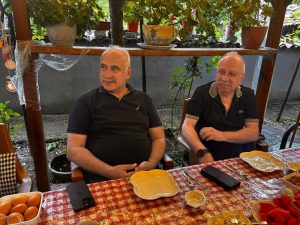 Emekli öğretmen yaşayan kültür mirası Sabri Çiçekçi2nin saklı bahçesinde İskilip Belediye Başkanı İsmail Çizikçi ile Prof.Dr.Oğuz Özyaral ve proje ekibi ile sabah kahvaltısı