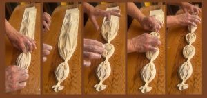 4. Bazen verev şekilde dilimlenir, uçları kapatılır bazen de pilili şekilde katlanır ve parçalar kesilir, kenarlar toplanıp uçları açılır, kuş gibi bir görsel ortaya çıkar.