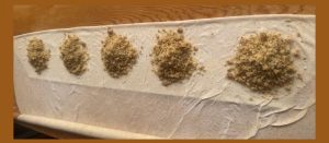 3. Yufkanın içine iç harç serpilir, rulo yapılır.