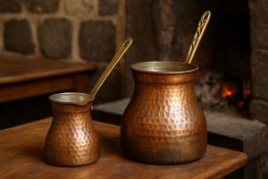Diyarbakır kahvehanelerinde kullanılan geleneksel kahve pişirme kapları, gündelik kullanım nesneleri olmanın ötesinde; kentin zanaatkârlık bilgisini, sosyal yaşamını ve gastronomik kimliğini birlikte taşıyan kültürel bellek öğeleridir.