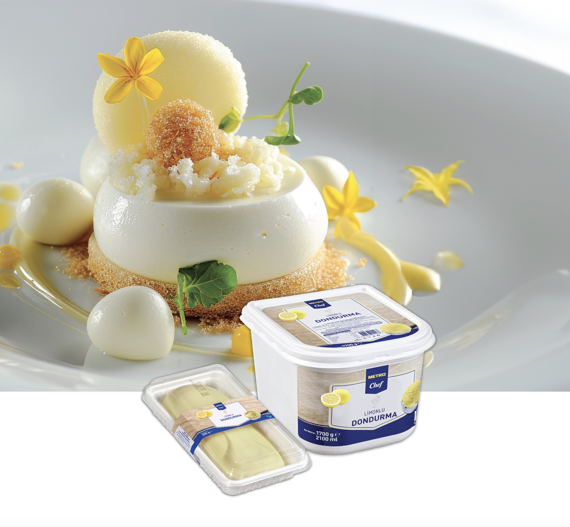 Kendi markası Metro Chef ile yazın vazgeçilmez lezzeti dondurma çeşitlerini raflarında sunan Metro Türkiye ürün gamına son olarak limonlu dondurma lezzetini ekliyor. Klasiklerden sade ve kakaolu dondurma başta olmak üzere kestaneliden tuzlu karamelliye, damla sakızlıdan Antep fıstıklıya, karaduttan frambuaza 11 farklı çeşidiyle dövme yöntemiyle hazırlanan Metro Chef dondurmalar koruyucu ve tatlandırıcı içermiyor. Metro Chef Dondurmalar sıcak yaz günlerini lezzetli bir serinliğe kavuştururken, hem ev mutfaklarının hem de profesyonel mutfakların vazgeçilmezi oluyor.
