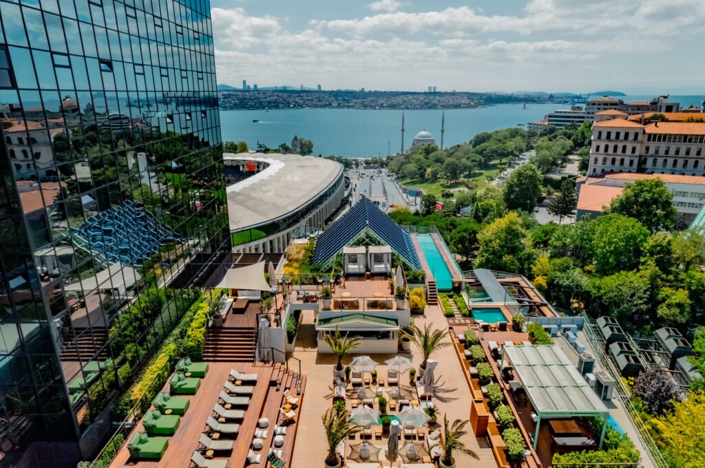 Sosyal hayatın vazgeçilmez buluşma noktalarından biri olan The Ritz-Carlton, Istanbul’un terasında yer alan The Roof, benzersiz lokasyonuyla şehirde tatilin tadını çıkarmak isteyenlere hitap ediyor. Otelden ayrı da bir girişe de sahip olan The Roof’ta bulunan sakin dinlenme alanları ve esşiz Boğaz manzarasıyla bütünleşen sonsuzluk havuzu, haftanın tüm günleri 09:30-20:00 saatleri arasında misafirlerine hizmet veriyor.