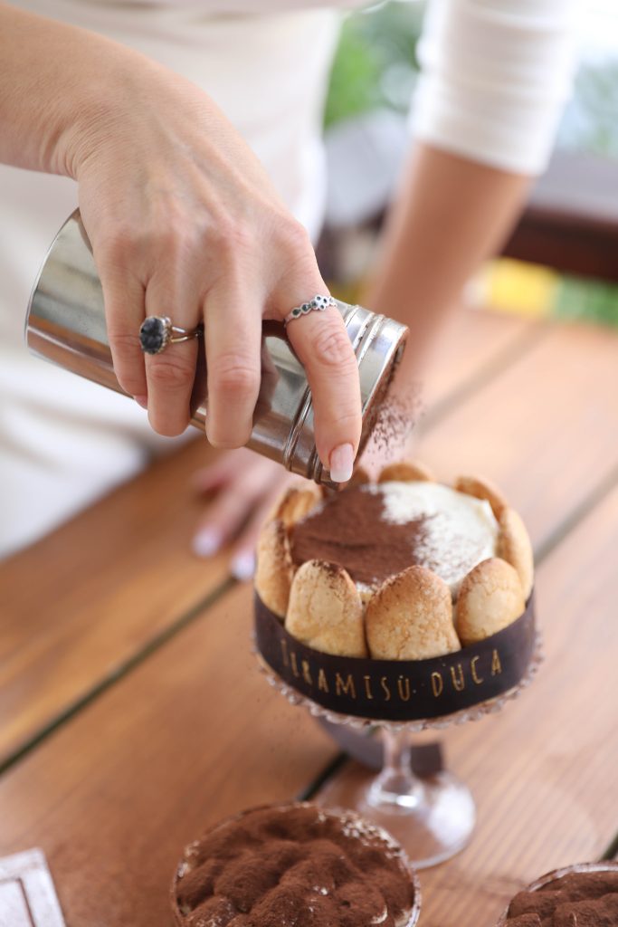 Nazmiye Değirmenci BAL: Herşey 1995 yılı Ağustos ayında Sevgili eşim Müjdat BAL ile balayına gittiğimiz Venedik-İtalya San Marco meydannda güzel şirin bir cafede kaşıklayarak yediğimiz yumuşak bulut bulut mascarpone, kahve ve bisküvitadıyla harmanlanmış tatlı ile başladı. Gönlümüzü fetheden damaklarımızda iz bırakan o güzel tat Tiramisu idi. Tatlar damaklarda iz bırakırmış. Bizim Tiramisu Duca hikayemizde öyle başladı. Özel veya iş gereği bulunduğum yurtiçi-yurtdışı seyahatlerim de orijinal tatlı ve pastaların tadımını yapmak ve reçetelerini çalışarak damak tadımıza uyarlamaktan keyif duyan biriyim. Çalışmalarım arasında Geleneksel İtalyan tatlısı olan Tiramisu her zaman liste başında benim ve ailem için özel bir anlam ifade ediyordu. Her ne kadar farklı şeflerin reçetelerini çalışsam da 2017 yılı sonbaharında Roma’da aldığım eğitim sonrasında orijinal İtalyan Tiramisu üzerine Private Chef (Özel Usta) oldum. Türkiye’ye döndükten sonra da İstanbul’da ülkemizin ilk tescilli Orijinal İtalyan Tiramisu markası Tiramisu Duca 2018 yılı Ocak ayında İstanbulda doğmuş oldu. İtalyanca da “Dük” anlamına gelen “Duca” kelimesi, Tiramisu tatlısının tarihte ilk kez İtalya’da bir Dük onuruna yapılmasına ithafen marka adı olarak özümsenmiştir.